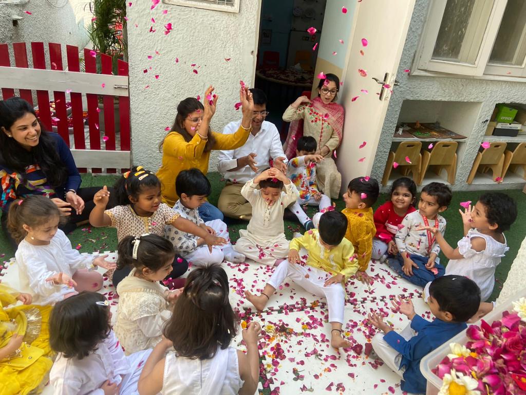 Children enjoyed playing floral Holi with their friends at Early Years, GK branch. While cheer and excitement filled the air, Rose and Marigold flower petals made the celebration vibrant and beautiful.